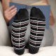 Show off your furry friends in style with our unique personalised pet photo women's crew socks! These fun socks feature custom pet portraits framed and decorated with paw prints and hearts. Add a different photo on each sock doubling the customisation and creating trendy mismatched socks. The design includes playful pink and white stripes set against a bold black background, creating a vibrant and eye-catching look. A practical and heartfelt gift for pet owners, animal lovers, or anyone who wants to carry their pets with them wherever they go. Perfect gift for birthdays, holidays, or special occasions.