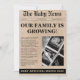 This vintage-inspired baby shower invitation features a beige newspaper-style background, with a classic layout: event details (date, location, RSVP) on the left, and a customisable photo on the right. A second photo can be added to the back for a personal touch. Perfect for celebrating your little headline in style!