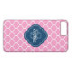 Unique Pink Lattice Pattern Navy Blue Monogram Case-Mate iPhone Case