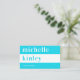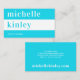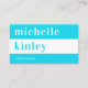 Simple elegant bold typography plain aqua blue and white minimalist networking business card with a wide horizontal stripe. Suitable for a teacher, writer, designer, photographer, consultant, makeup artist, hairstylist, life coach, or any other independent profession.