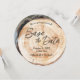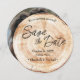 A unique Save the date card for your rustic wedding theme with elements of wood grain. I wanted to design a round card imitating a wood, disc slice you often see at beautiful and romantic weddings. Customise the bride and groom names, wedding date, location and include your wedding website with your photo. Delete the wedding website if it doesn't apply to you.
