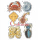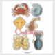 A medley of 6 sea creatures such as a crab, octopus, fish, sea shell, cuttlefish and skate. Each unique and interesting in their own way., customise with your own greeting, name, message, etc