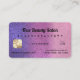 This is the perfect business card for a trendy, stylish, girly, and modern businesswoman. This design features a glamourous and chic faux printed violet-purple into rose pink into blush pink sparkly glitter ombre gradient design in the cute, unique, and clever style of a credit card. It's the perfect way to promote your business to potential customers.