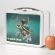 This is a standard metal lunchbox that appears to work just fine. We designed this box ourselves with an uploaded photo and custom text on the front and back. It looks absolutely beautiful except the front of the lunchbox is not centered like it shows in the photo. The print borders don't align with the inset flat part of the box where the preview photo online showed it perfectly centered in there. The back looks nice and centered though.