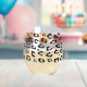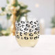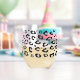 Unique stemless wine glass with leopard print. Cool drinking glasses personalizable with text. Trendy glasses for party, home, wedding and more.
