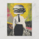 A mixed media collage of a woman with a cheeseburger for a head in black and white with a colourful background surreal unique AI generated art by Angelandspot