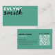 Make a bold impression with this green business card featuring elegant script typography and a scannable QR code linking directly to your website. A perfect fusion of style and function for modern professionals.