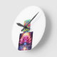 The clock did not take as long to arrive as I thought it might and was extremely well packaged. I didn't do the measurements so I didn't realize it is a little smaller than the average clock but that does not matter (just make sure you check if that's important to you).It is really nifty! It seems very solid and well made not flimsy at all. It has been going well and has kept good time in its few weeks on my wall. Nice product. Gets noticed too! Nicer in real life than the picture but true to the picture