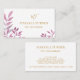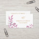 This unique business card features a botanical design of purple watercolor leaves paired with stylish gold script typography.
