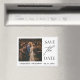 These magnets are perfect as unique save the date magnets that capture the essence of your engagement with a personal touch. The photo template lets you share a beautiful, high-quality engagement image, whether you prefer a playful, candid, or romantic shot, making it a truly personal piece. The sleek typography highlights your wedding date and essential details without taking attention away from the photo, creating an attractive balance for a truly engaging save the date. This magnet design is an ideal choice for couples who want a modern twist on traditional save-the-dates and a memorable way to announce their wedding date.