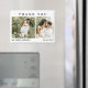 Introducing our Unique Wedding Thank You Magnet, a beautifully designed keepsake that lets you express your gratitude to your guests in a special and memorable way. This magnet features a dual wedding photo template, allowing you to upload two of your favourite photos from your big day. Whether it's a romantic portrait or a candid moment, this design lets you showcase the highlights of your wedding in a creative, personal format. The elegant "Thank You" typography adds a heartfelt touch, making it the perfect wedding favour for your guests.