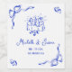 Unique blue whimsical Hand Drawn and hand written Contemporary Retro French Fun save the date with a bow frame, a whimsical trendy artwork for your french wedding by Savanamm