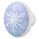 Deck the halls with this unique ceramic cabinet knob featuring a white snowflake over a soft artistic background of teal, blue and purple.