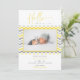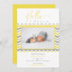 Funny Yellow Grey Zigzag Stripes Hello World Quote Newborn Unisex Announcement.