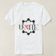 The "Unite" shirt design features a bold, central graphic with interlocking hands of diverse skin tones, symbolising solidarity and inclusivity. Surrounding the hands are abstract shapes and lines in harmonious colours, adding a modern and uplifting vibe to the message of unity.
