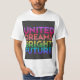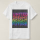 The t-shirt design features the text "United Dreams Bright Future" in a vibrant rainbow gradient, starting from purple and ending in pink. The text is set against a black background and is displayed in a modern, geometric font. The design conveys a message of hope, unity, and optimism, with the colours symbolising diversity and inclusivity.