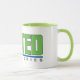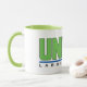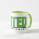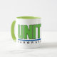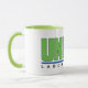 White mug, with green handle and green and blue colour United Laboratories Corporate Logo