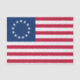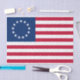 This item features the Betsy Ross flag, which was an early design of the United States national flag. It is named after an early upholsterer and flag maker who is said to have first created it. The pattern of the Betsy Ross flag is 13 alternating red-and-white stripes with stars in a field of blue in the upper left corner canton. Its distinguishing feature is thirteen 5-pointed stars arranged in a circle representing the 13 colonies that fought for their independence during The American Revolutionary War. Since the beginning of the 20th century, the flag has been a popular symbol of American patriotism.