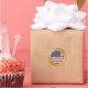 The United States flag is inset into a rounded faux gold ring. The words "United States" feature at the top and bottom of the design, and are of a pressed effect. The pair of three decorative stars across from each other, are also designed with a pressed effect.
