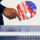 Red and blue stars and stripes design, with the image of a ping-pong-ball, to personalise with name of the player