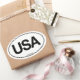 This item has the popular international oval design and abbreviation for the United States; USA.