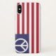 This design features a variant of the national flag of the United States of America with a white peace sign in the blue top-left canton. It can be seen as a emblem of anti-war activism, symbolising hope for a better world.