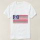 This design features a variant of the national flag of the United States of America with a white peace sign in the blue top-left canton. It can be seen as a emblem of anti-war activism, symbolising hope for a better world.