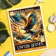 Experience the nostalgic charm of vintage United States with our captivating Vintage Postcard. This stunning illustration transports you back in time with its expressive brushstrokes and vibrant colour palette, reminiscent of classic paintings. Blending abstraction and realism, the subject's likeness emerges amidst a captivating tapestry of abstract forms, drawing you into a world of dynamic energy and intensity. With bold contrasts and dripping paint effects, this postcard exudes movement and spontaneity, inviting you to explore the depth and texture of the painting.