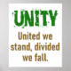 Unity brings people together. Let the world know how you feel with this unity-themed quote: United we stand, divided we fall.