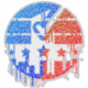 This design features a circular composition that incorporates vibrant, striped shapes. At the base, a cityscape silhouette provides context, while a central ballot shape, highlighted by a check mark formed through negative space, emphasizes participation in the democratic process. Five stars are thoughtfully arranged in the middle, adding a sense of unity. The textured, fluid elements create a dynamic visual experience, reflecting the interplay of diverse perspectives.