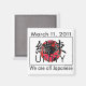 "Kessoku" the Japanese kanji character for Unity over a red globe suggesting the Japanese flag. Featuring the tragic date of March 11, 2011 and the motto "We are all Japanese."