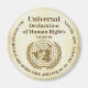 This round magnet has a rustic brown background and part of Article 01 from the United Nations Universal Declaration of Human Rights: All human beings are born free and equal in dignity and rights. This document, consisting of 30 articles, enshrines the rights and freedoms of all human beings. It was approved on December 10, 1948 after 48 of the 58 nations voted in favour (eight abstained and two failed to vote or abstained.)