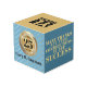 Your choice of colour scheme on this employee milestone anniversary display cube featuring a faux gold medal emblem with stripes, personalised with your employee's name, number of years and other text, plus your company logo on the top.