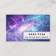* Indigo Pink Purple White Stars describes this cosmic outer space celestial universe nebula celestial star background business card. There is a white with light lavender edge information box on the front. The back of the card matches the border of the front information box . The colour of text on the back is white. *