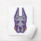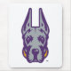 This design is a close-up of the University at Albany Great Dane mascot head. The illustration uses bold purple outlines with detailed shading in grey for the Great Dane's face, highlighting its angular features. The eyes are sharp, and the expression conveys alertness and strength. Accents of gold appear on either side of the dog's jaw, adding a touch of warmth to the otherwise fierce look. The ears are upright and pointed, reinforcing the logo's sense of readiness and authority. The design is minimal yet powerful, ideal for branding UAlbany’s athletic identity.