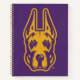 This design is a close-up of the University at Albany Great Dane mascot head. The illustration uses bold purple outlines with detailed shading in grey for the Great Dane's face, highlighting its angular features. The eyes are sharp, and the expression conveys alertness and strength. Accents of gold appear on either side of the dog's jaw, adding a touch of warmth to the otherwise fierce look. The ears are upright and pointed, reinforcing the logo's sense of readiness and authority. The design is minimal yet powerful, ideal for branding UAlbany’s athletic identity.