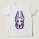 This design is a close-up of the University at Albany Great Dane mascot head. The illustration uses bold purple outlines with detailed shading in grey for the Great Dane's face, highlighting its angular features. The eyes are sharp, and the expression conveys alertness and strength. Accents of gold appear on either side of the dog's jaw, adding a touch of warmth to the otherwise fierce look. The ears are upright and pointed, reinforcing the logo's sense of readiness and authority. The design is minimal yet powerful, ideal for branding UAlbany’s athletic identity.