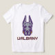 The University at Albany Great Dane mascot logo features a stylised depiction of a Great Dane's head. The dog is illustrated with sharp, bold lines in purple and grey, giving it a fierce, confident expression. The ears stand tall, symbolising alertness and strength. Underneath the Great Dane head is the word "UAlbany" written in bold, blocky golden letters outlined in purple, reinforcing the university's branding. This design represents UAlbany's sports teams, highlighting power, loyalty, and determination.