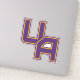 The The University at Albany initials logo features a bold and dynamic "UA" design, rendered in the university's signature purple and outlined with a striking gold border. The angular, block-like letters give the logo a strong and authoritative appearance, perfect for representing school pride and identity. The symmetrical and geometric structure of the letters conveys a modern and professional aesthetic.