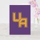 The The University at Albany initials logo features a bold and dynamic "UA" design, rendered in the university's signature purple and outlined with a striking gold border. The angular, block-like letters give the logo a strong and authoritative appearance, perfect for representing school pride and identity. The symmetrical and geometric structure of the letters conveys a modern and professional aesthetic.