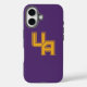 The The University at Albany initials logo features a bold and dynamic "UA" design, rendered in the university's signature purple and outlined with a striking gold border. The angular, block-like letters give the logo a strong and authoritative appearance, perfect for representing school pride and identity. The symmetrical and geometric structure of the letters conveys a modern and professional aesthetic.