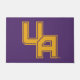 The The University at Albany initials logo features a bold and dynamic "UA" design, rendered in the university's signature purple and outlined with a striking gold border. The angular, block-like letters give the logo a strong and authoritative appearance, perfect for representing school pride and identity. The symmetrical and geometric structure of the letters conveys a modern and professional aesthetic.