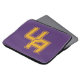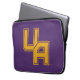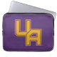 The The University at Albany initials logo features a bold and dynamic "UA" design, rendered in the university's signature purple and outlined with a striking gold border. The angular, block-like letters give the logo a strong and authoritative appearance, perfect for representing school pride and identity. The symmetrical and geometric structure of the letters conveys a modern and professional aesthetic.