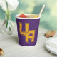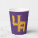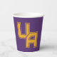 The The University at Albany initials logo features a bold and dynamic "UA" design, rendered in the university's signature purple and outlined with a striking gold border. The angular, block-like letters give the logo a strong and authoritative appearance, perfect for representing school pride and identity. The symmetrical and geometric structure of the letters conveys a modern and professional aesthetic.