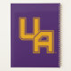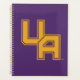 The The University at Albany initials logo features a bold and dynamic "UA" design, rendered in the university's signature purple and outlined with a striking gold border. The angular, block-like letters give the logo a strong and authoritative appearance, perfect for representing school pride and identity. The symmetrical and geometric structure of the letters conveys a modern and professional aesthetic.