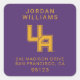 The The University at Albany initials logo features a bold and dynamic "UA" design, rendered in the university's signature purple and outlined with a striking gold border. The angular, block-like letters give the logo a strong and authoritative appearance, perfect for representing school pride and identity. The symmetrical and geometric structure of the letters conveys a modern and professional aesthetic.