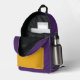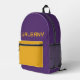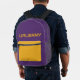 The University at Albany wordmark features bold, geometric typography in purple with gold outlines. The text is written in all capital letters, forming a strong and modern style that emphasizes the university's identity. The angular lines and sharp edges of the font create a sense of power and professionalism. The gold outline adds a touch of prestige and visibility, making the wordmark stand out on both light and dark backgrounds. This design is perfect for branding athletic teams, merchandise, and university-related media.