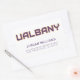 The University at Albany wordmark features bold, geometric typography in purple with gold outlines. The text is written in all capital letters, forming a strong and modern style that emphasizes the university's identity. The angular lines and sharp edges of the font create a sense of power and professionalism. The gold outline adds a touch of prestige and visibility, making the wordmark stand out on both light and dark backgrounds. This design is perfect for branding athletic teams, merchandise, and university-related media.