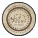 The official seal of the mythical University of Beringia, established 20000 BCE, on a leather background. Beringia is the name given to the Bering land bridge and areas of both Alaska and Siberia which bordered upon it. The seal features a simple, brown line drawing of a Woolly Mammoth (the school's mascot), with text reading, "University of Beringia," "ESTD 20000 BCE," and the schools motto: "TREAD LIGHTLY UPON THE LAND." The image has a primitive-ish feel to it - after all the school was established 22000 years ago, long before modern materials and printers. Add your own additional text.