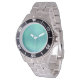 Has heft and feel of expensive stainless steel quartz watches. Good band with safety catch.  I removed links, which is easy because engraved arrows show direction to push the linking pins. As always by this seller, the image (a railroad logo) is a perfect reproduction of my emailed image, and is precisely spaced and aligned.